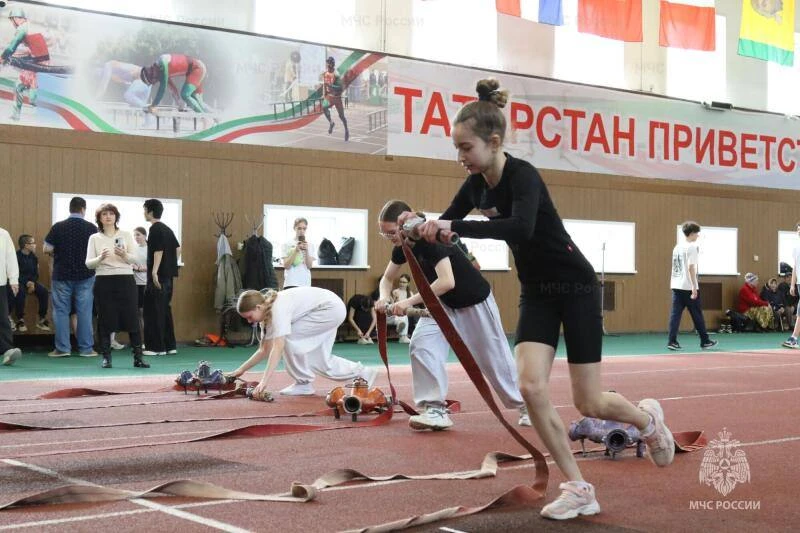 В манеже Главного управления МЧС России по Республике Татарстан прошли городские соревнования по пожарно-спасательному спорту среди школьников от 11 до 14 лет. За титул сильнейшей команды Казани боролись 14 лучших команд.