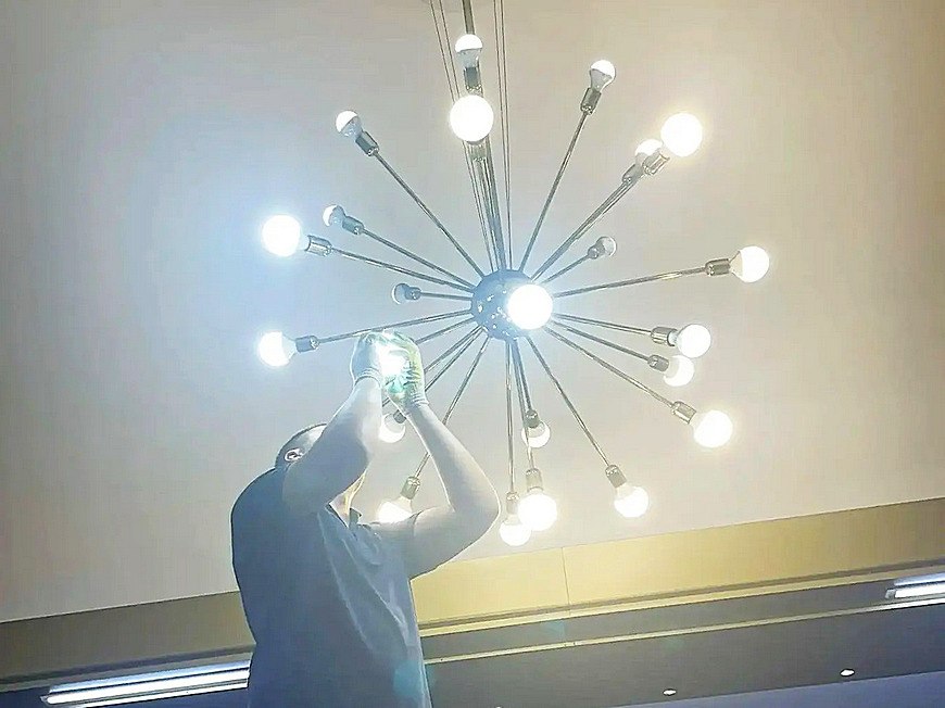 На «Проспекте Победы» заменили 18 ламп в люстрах типа «Салют».