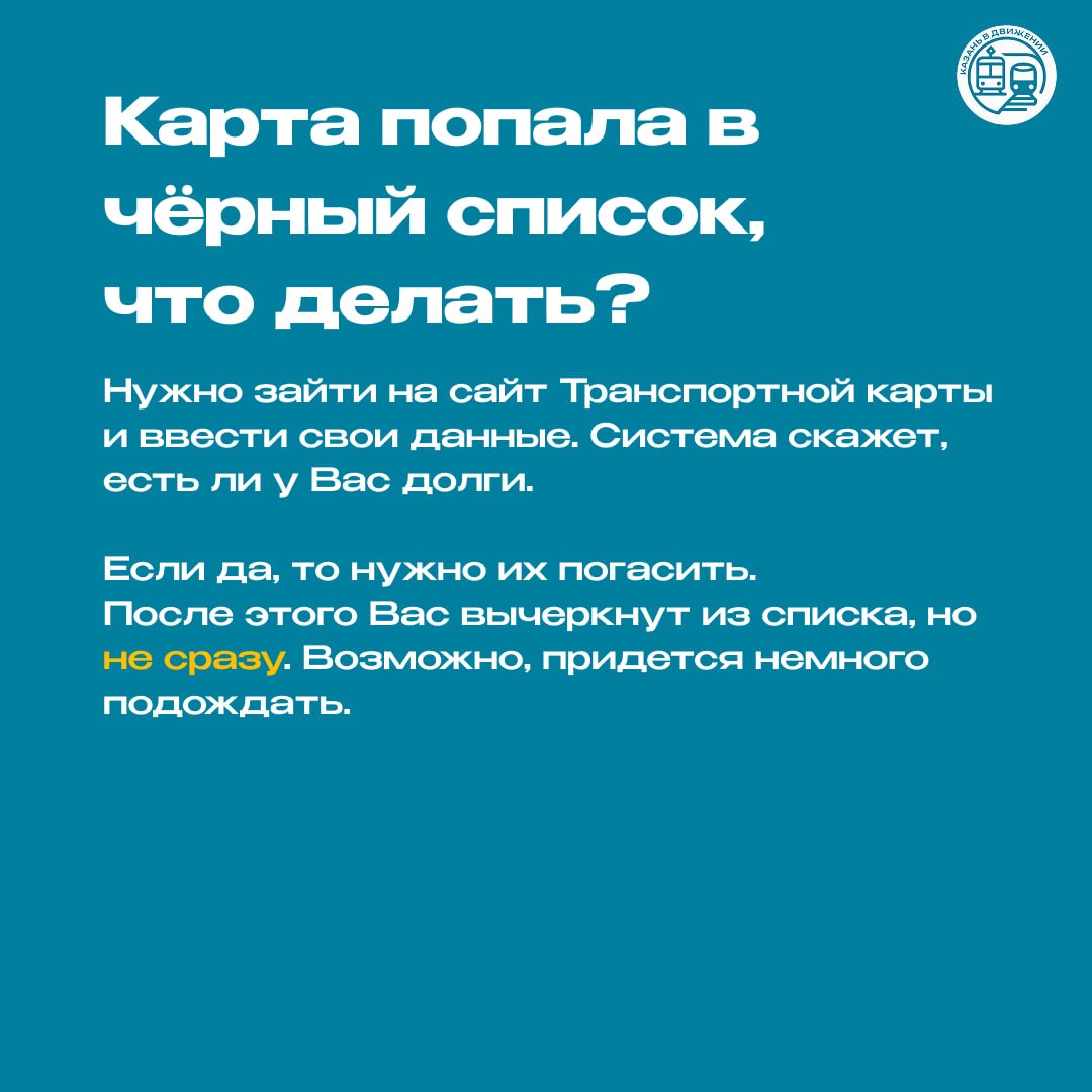 Если при поездке карта не срабатывает, скорее всего есть задолженность. Зайдите на transkart.ru и погасите долг. Подождите, пока карта выйдет из стоп-листа