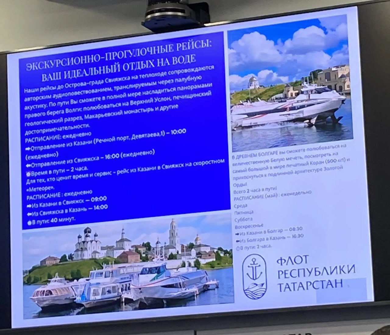 В Татарстане 24 апреля откроется пассажирская навигация по Волге. Первый рейс отправится из речного порта Казани в Верхний Услон. Об этом на пресс-конференции в ИА «Татар-информ» сообщил гендиректор «Флота РТ» Роман Лизалин. Он отметил, что первый рейс скоростного судна – «Метеора» – запланирован на 30 апреля. Он отправится в Болгар и Тетюши. Навигация водоизмещающего флота продлится до 22 ноября. Тогда же завершится работа и скоростных судов.