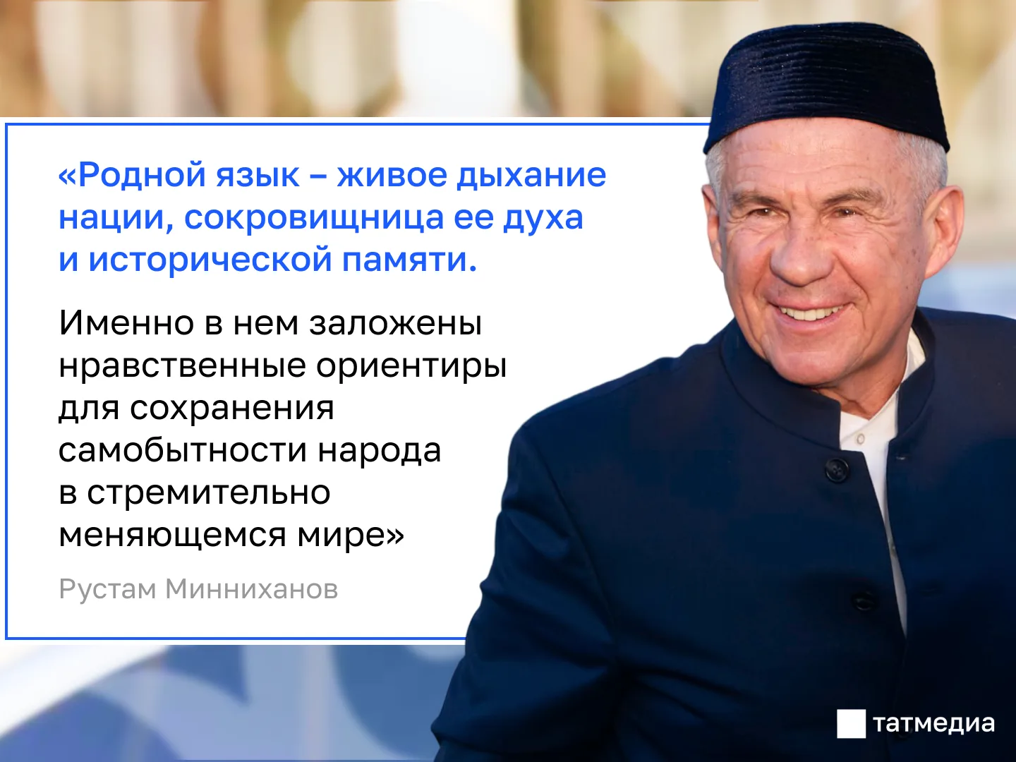 Пусть великое культурное наследие наших знаменитых предшественников служит надежной опорой в бережном сохранении родного языка, передавая его красоту и богатство потомкам как уникальную ценность. Желаю вам мира, процветания, неиссякаемого вдохновения и гордости за родной язык и культуру!» – заключил Рустам Минниханов.