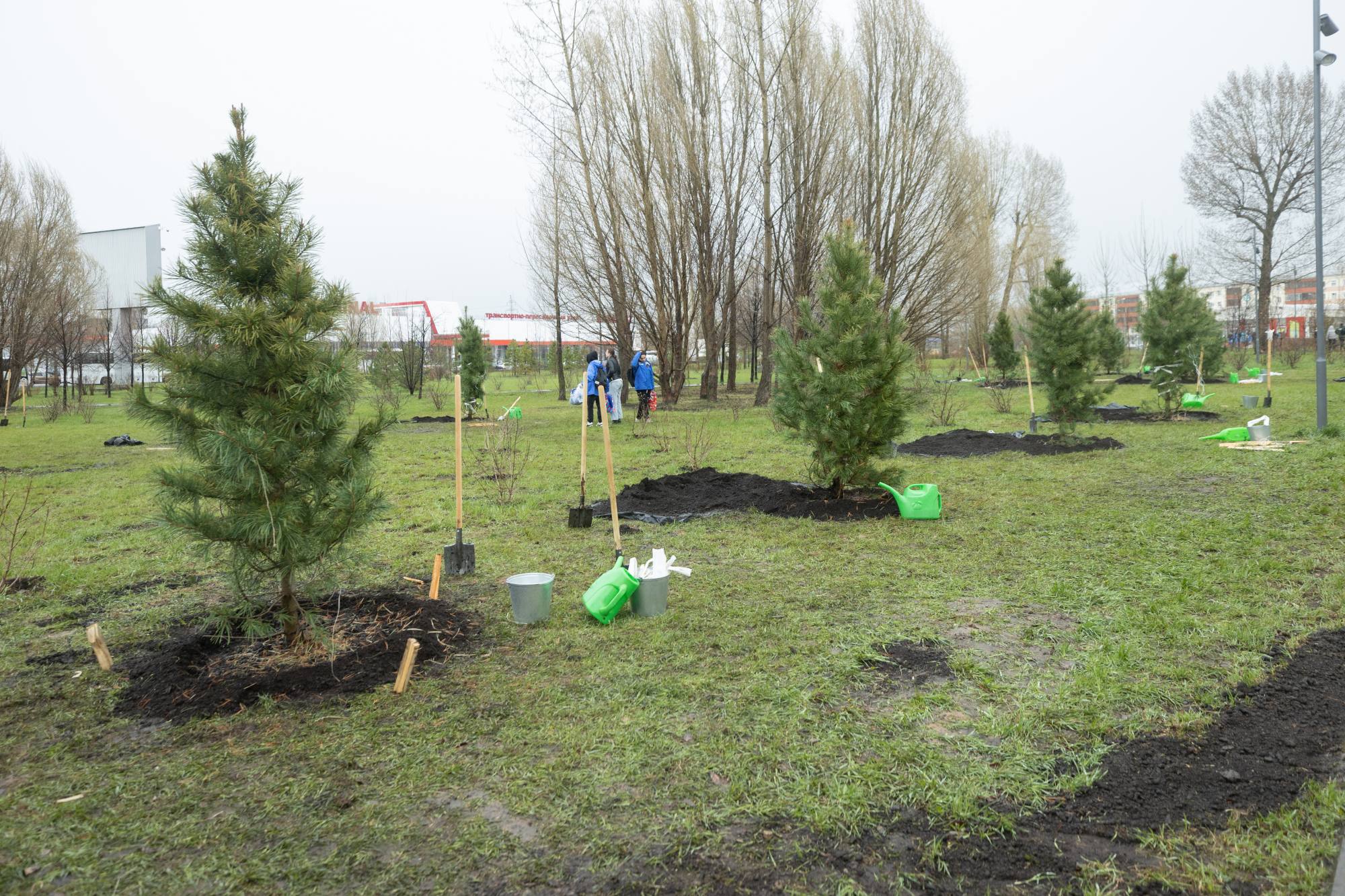 В городе продолжается экологическая акция по озеленению общественных пространств: сегодня в сквере у железнодорожного вокзала Казань-2 высадили 40 сибирских кедров.