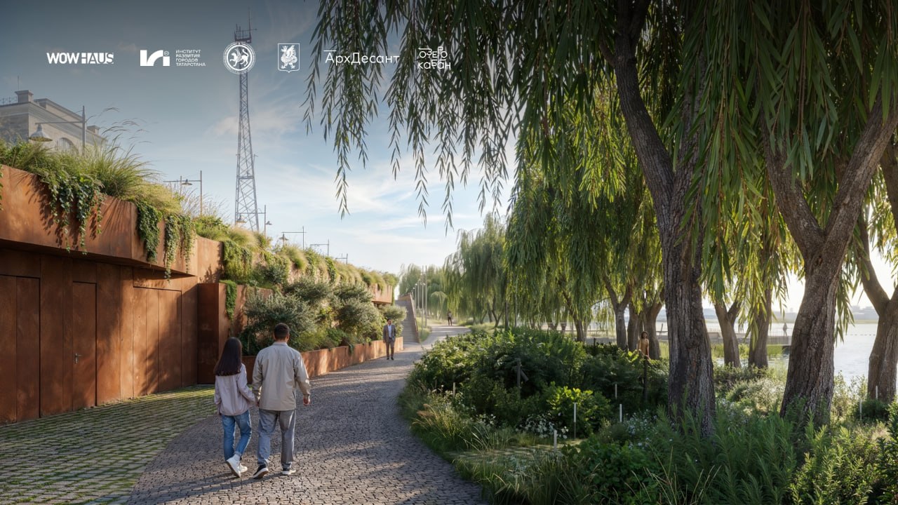 Особое внимание уделено озеленению. На воде появятся водные сады — специальные зоны с высадкой растений. Также запланировано озеленение склона.