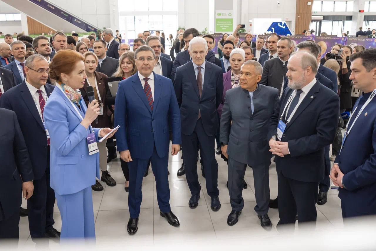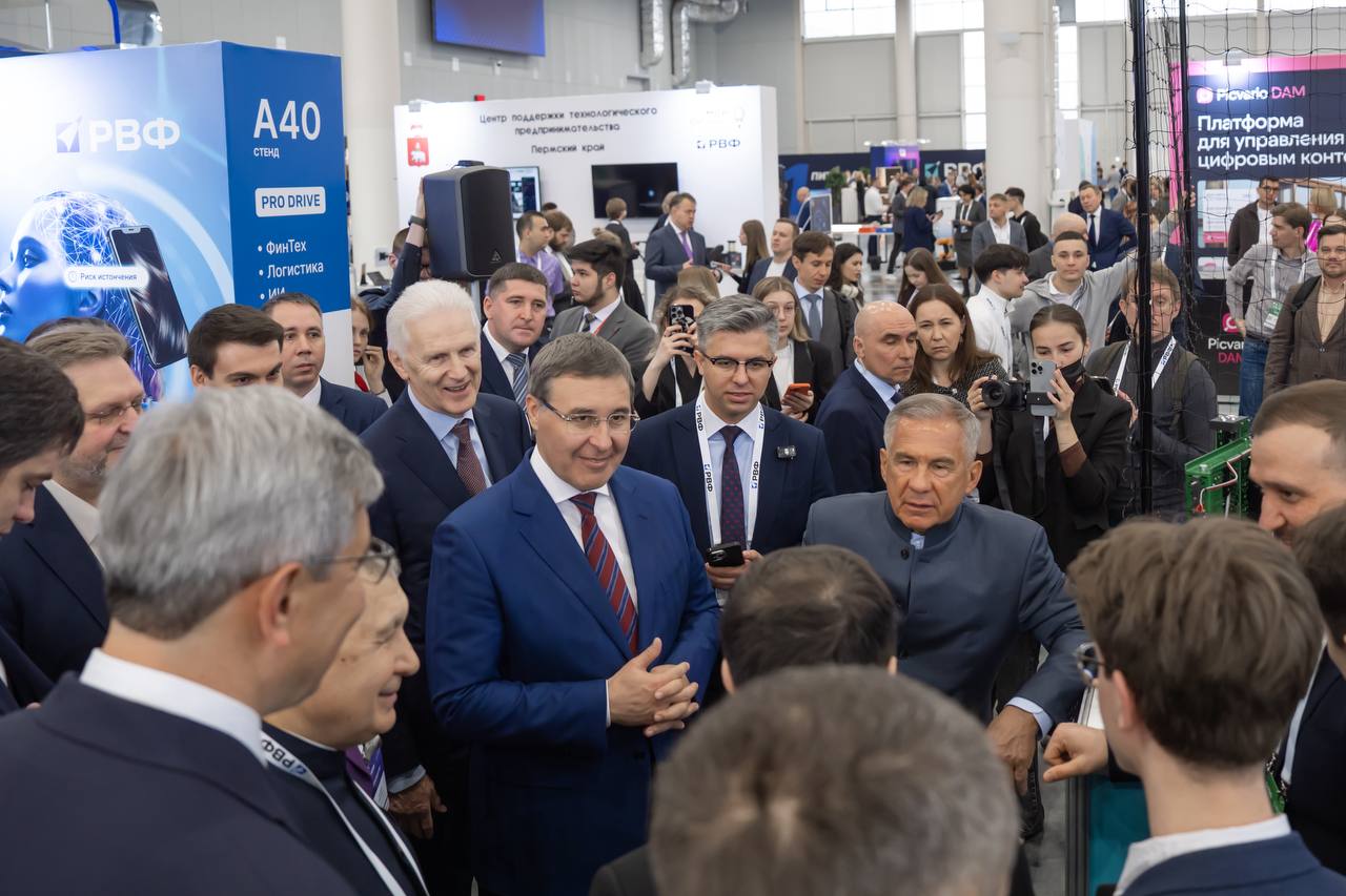 Перед началом пленарного заседания Валерий Фальков и глава Республики Татарстан Рустам Минниханов ознакомились с выставкой, где представлено более 150 российских и 30 иностранных стартапов по самым перспективным направлениям.