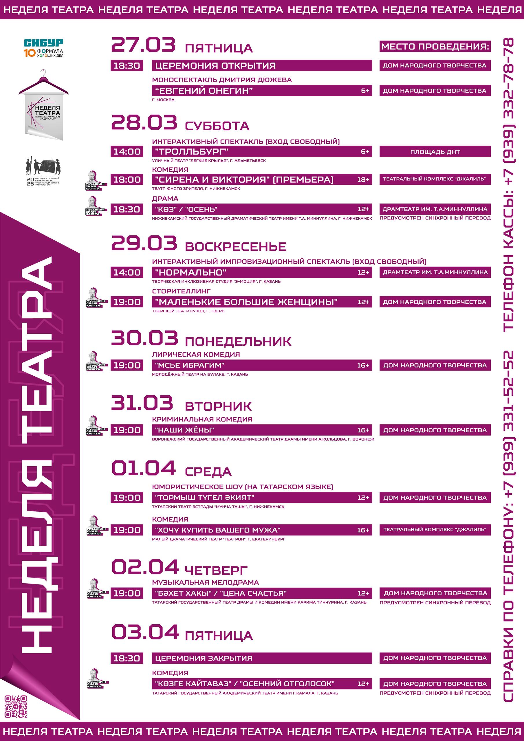 С 27 марта по 3 апреля в городе пройдёт «Неделя театра нефтегазохимических городов России». В эти дни на сценах Нижнекамска выступят театры из Москвы, Казани, Твери, Альметьевска, Воронежа, Екатеринбурга и, конечно, нашего города.