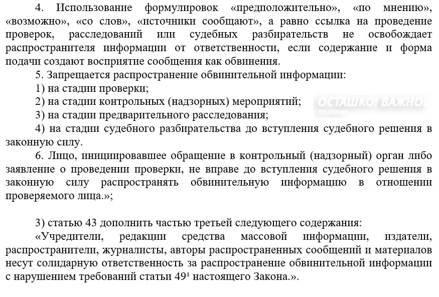 Документ запрещает использовать формулировки «предположительно», «по мнению», «возможно», «со слов», «источники сообщают». Даже с такими оговорками публикация будет считаться нарушением, если создаёт впечатление, что человек виновен.
