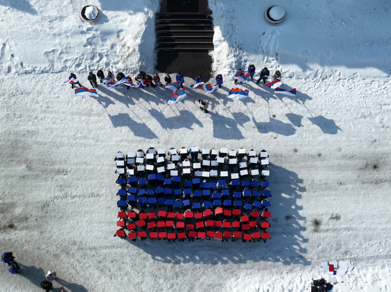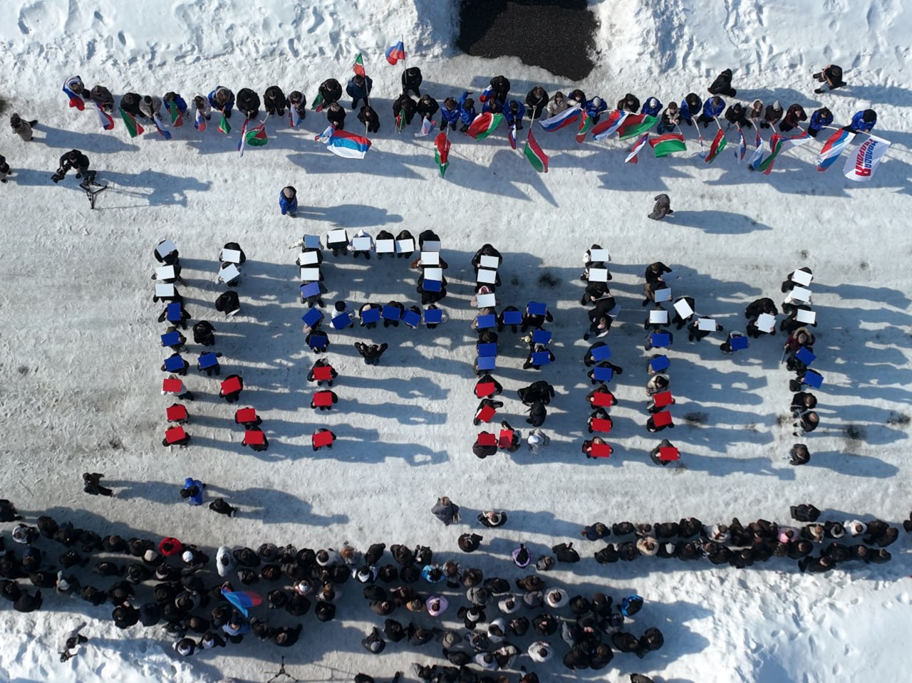 Более 300 участников выстроились в слова «Крым», «Навсегда» и в фигуру российского триколора на площадке исторического парка «Россия – моя история».
