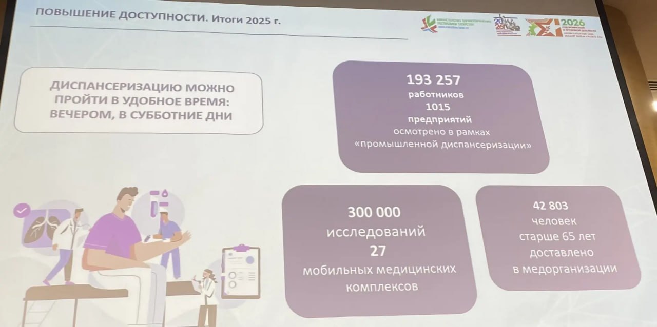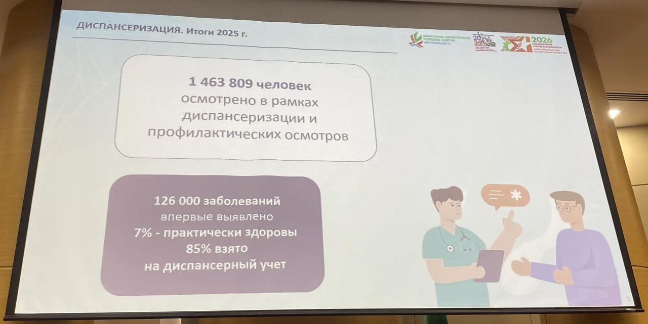 В Татарстане в 2025 году диспансеризацию и профилактические осмотры прошло 1 463 809 человек. Об этом сегодня на брифинге в Кабмине РТ сообщил министр здравоохранения РТ Альмир Абашев. Он уточнил, что в ходе профилактических мероприятий выявлено 126 тысяч новых заболеваний. Среди них - 45 тысяч новых заболеваний сердечно-сосудистой системы, 1859 случаев злокачественных новообразований, а также около двух тысяч случаев сахарного диабета.