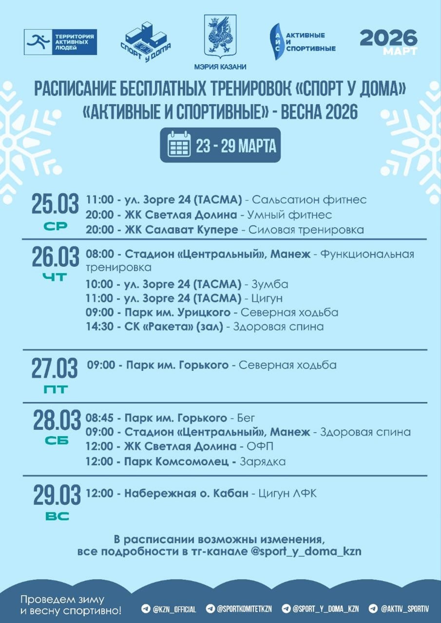 Ни на что не намекаем, просто делимся расписанием занятий «Спорт у дома» на эту неделю. Для участия необходима предварительная запись, она открывается после анонса. Следить за обновлениями можно в @sport_y_doma_kzn, @sportkomitetkzn, @aktiv_sportiv