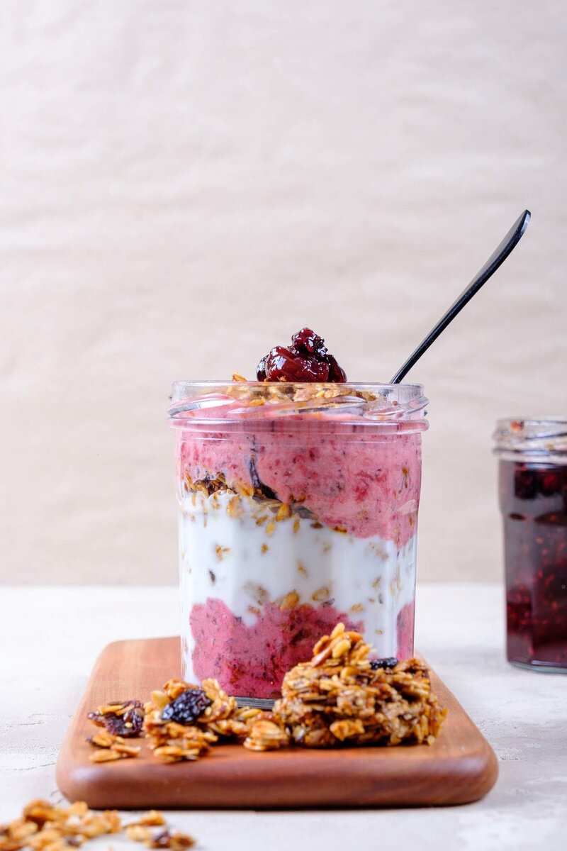 После того как гранола остынет, можно собирать завтрак: чередуйте слои гранолы и йогурта. Такой завтрак станет не только полезным, но и очень аппетитным. Наслаждайтесь своим утренним блюдом!