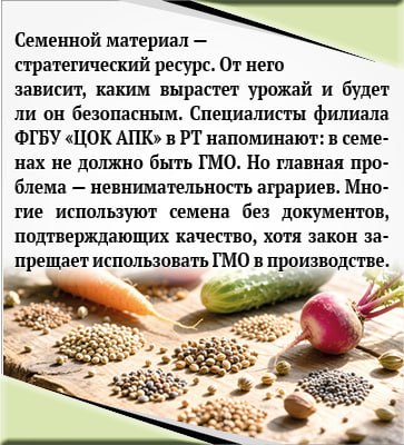 От него зависит, каким вырастет урожай и будет ли он безопасным. Специалисты филиала ФГБУ «ЦОК АПК» в РТ напоминают: в семенах не должно быть ГМО.