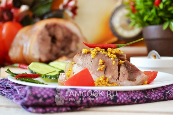 После этого аккуратно извлекаем рулет, заворачиваем его в фольгу и ставим в духовку на 10-15 минут при температуре 180 градусов. Главное — дождаться остывания рулета перед нарезкой, чтобы он сохранял форму. Подавать его можно на свежем хлебе с горчицей или хреном и солеными огурцами. Приятного аппетита!