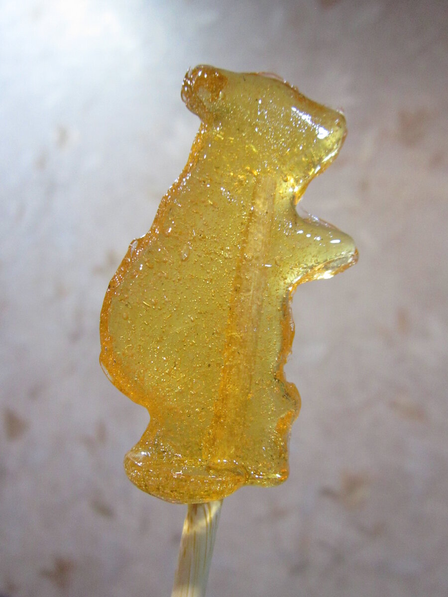 Теперь придайте ей форму: смазав форму растительным маслом, аккуратно вылейте туда горячую карамель. Вставьте в чуть загустевшую массу зубочистки или бамбуковые палочки, затем оставьте форму в холоде на 20-30 минут.