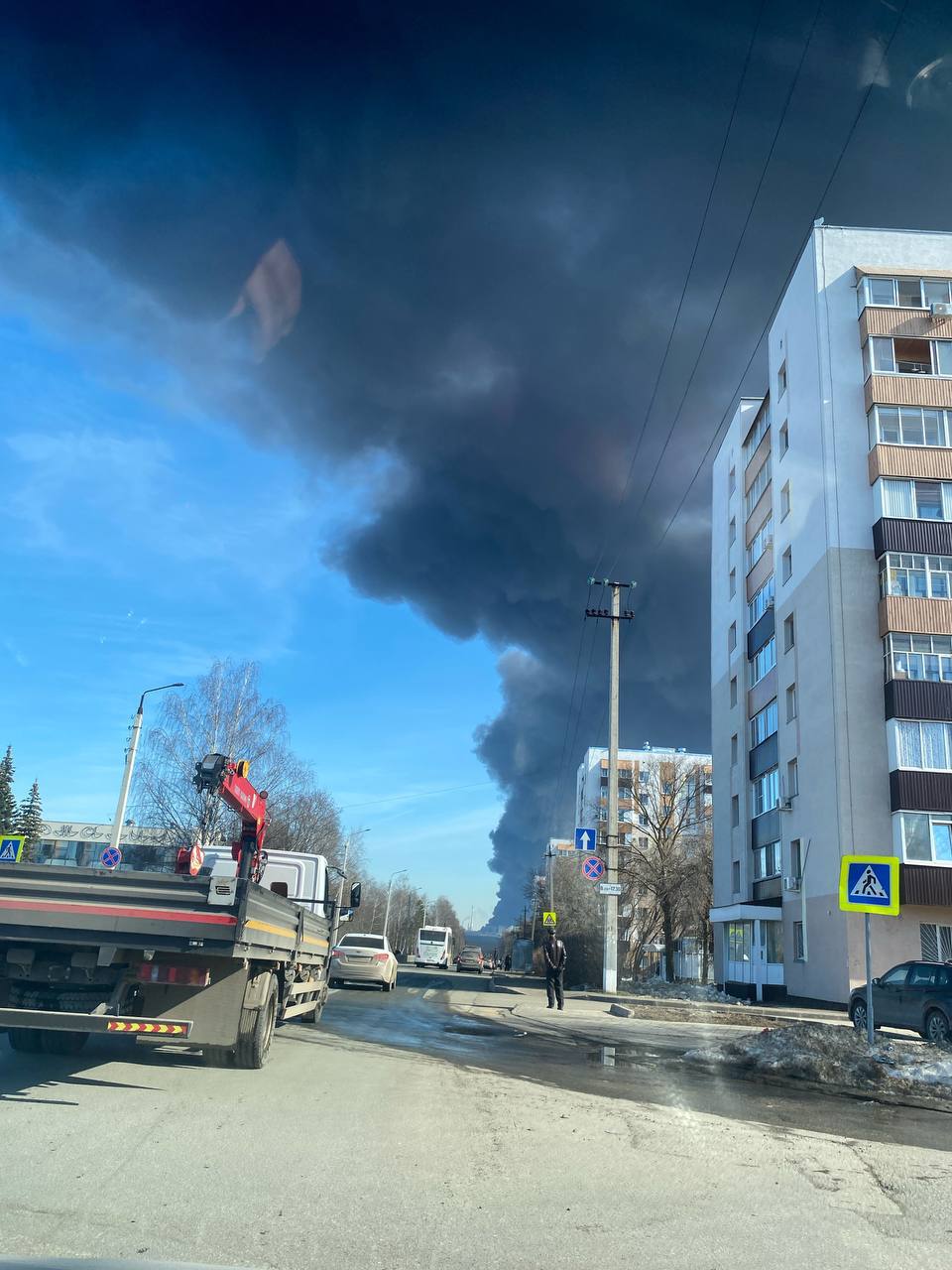 Глава района Радмир Беляев заявил, что на месте идет локализация огня. Сотрудников, не задействованных в тушении, эвакуировали на безопасное расстояние.