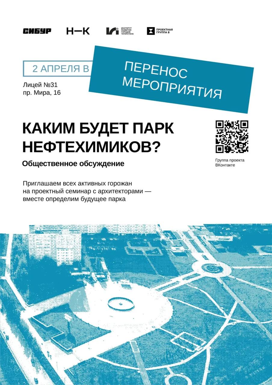К сожалению, в связи со сложившимися обстоятельствами общегородское мероприятие, посвящённое обсуждению парка Нефтехимиков, переносится.