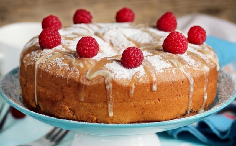 3. Вылить тесто в форму и равномерно распределить 200 г свежей малины (или других ягод) по поверхности. Ягоды можно слегка вдавить в тесто.