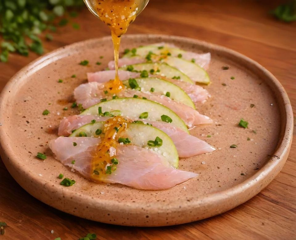 Соскучились по необычным вкусовым сочетаниям? Рекомендуем попробовать сашими с соусом на основе зеленого яблока и трюфельного меда. Это блюдо, которое сочетает в себе свежесть рыбы и сладость фрукта, станет настоящим украшением любого стола.