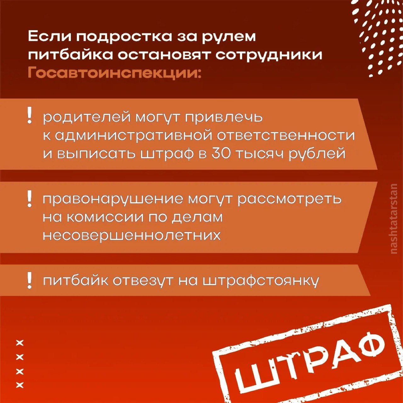С наступлением тепла на дорогах всё чаще появляются подростки на питбайках и вместе с этим растёт число происшествий. В Госавтоинспекции Казани напоминают: такая техника не предназначена для движения по дорогам общего пользования и представляет серьёзную опасность.