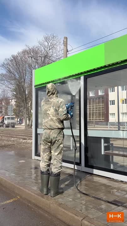 В работе задействованы комбинированные дорожные машины (КДМ): они моют бордюры, остановки и отбойники. Остановки чистят поэтапно — наносят мыльный раствор, протирают, убирают старые наклейки. За день одна бригада успевает обновить около 10 остановок! Всего в списке — около 200 объектов.