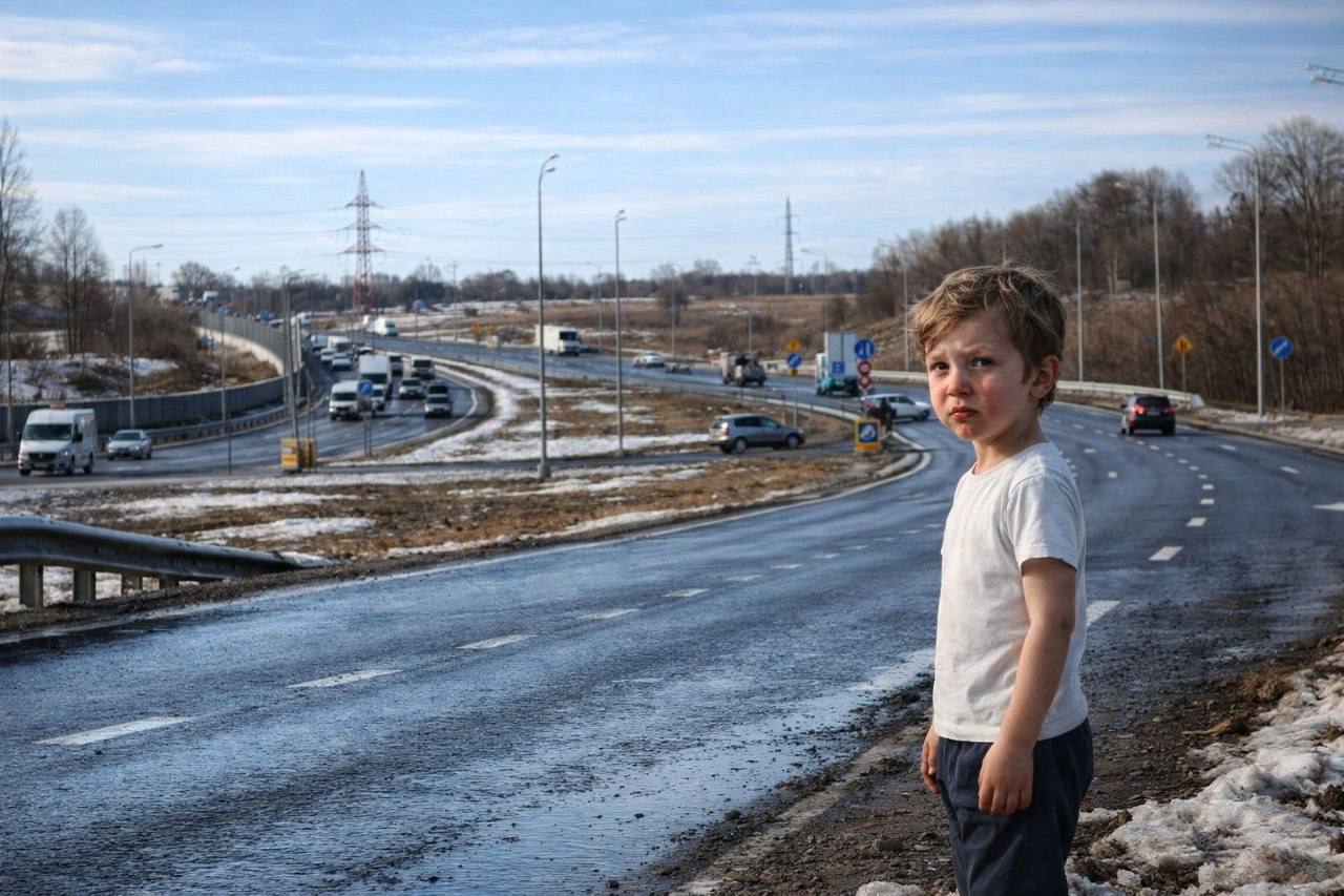 Ребенку всего 5 лет. Он стоял один на дороге.