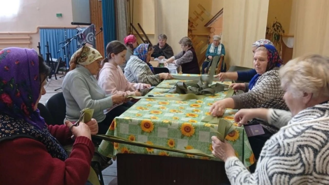 В селе Урюм Тетюшского района пенсионеры плетут маскировочные сети, изготавливают окопные свечи, «сухой армейский душ», формируют пакеты с ароматным травяным чаем и сухими супами.