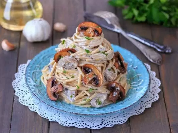Спагетти с грибами в сливочном соусе — это идеальное решение для тех, кто ценит непринужденность в кулинарии и хочет побаловать себя чем-то вкусным. Это простое и сытное блюдо украсит как обед, так и ужин, и придется по душе всем поклонникам пасты. Мягкие шампиньоны, запеченные до золотистого цвета и в обилии нежного сливочного соуса, создают гармоничное сочетание, достойное самых взыскательных гурманов!