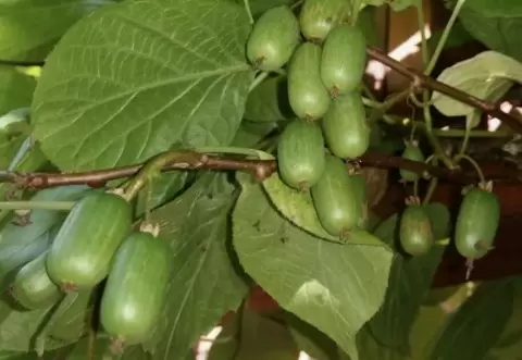 - Актинидия аргута — более мощная лиана, хотя ее морозостойкость ниже (до -25…-30°C). Плоды крупнее — до 5 см в длину и напоминают мини-киви.