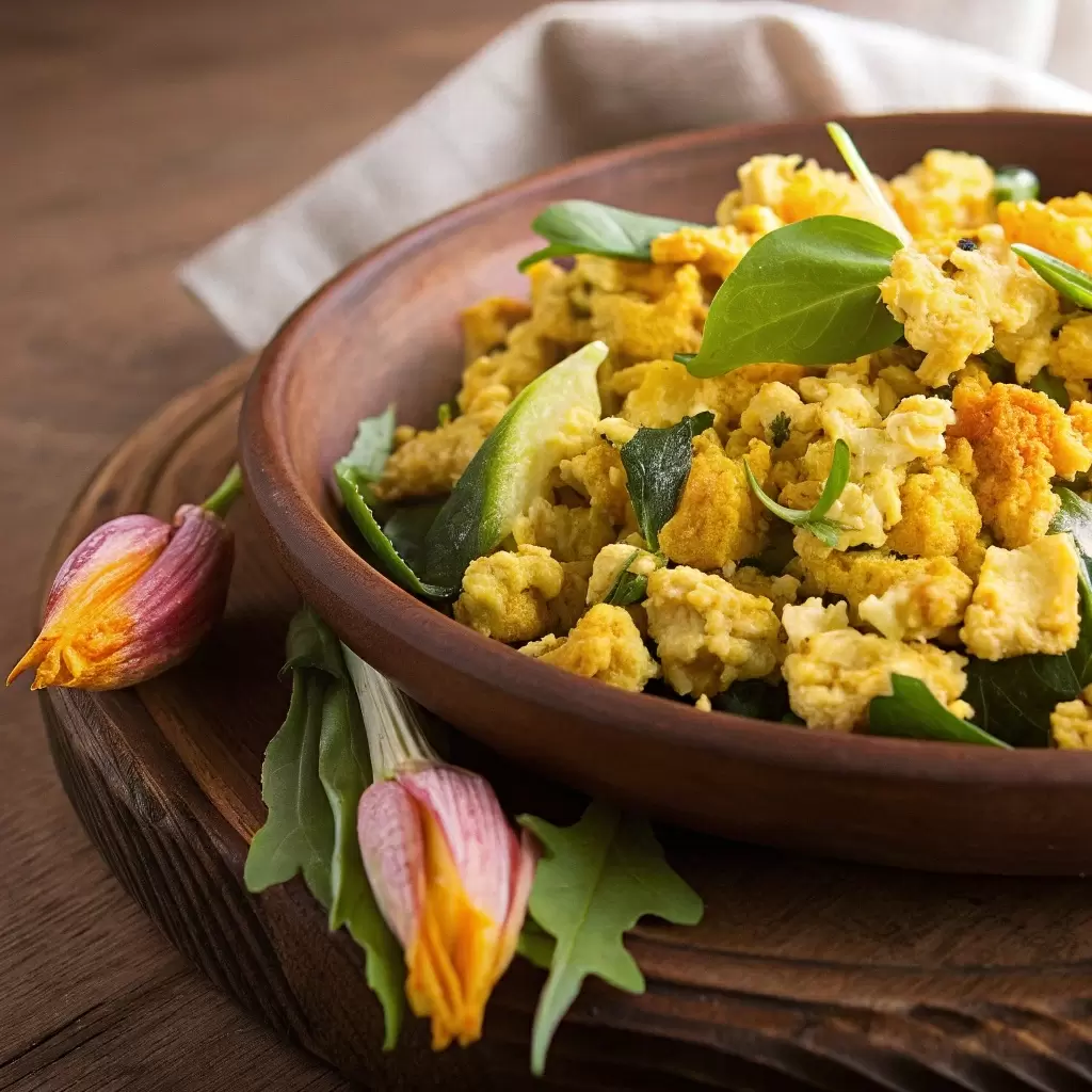 Тофу-скрэмбл с цветами цукини и шпинатом