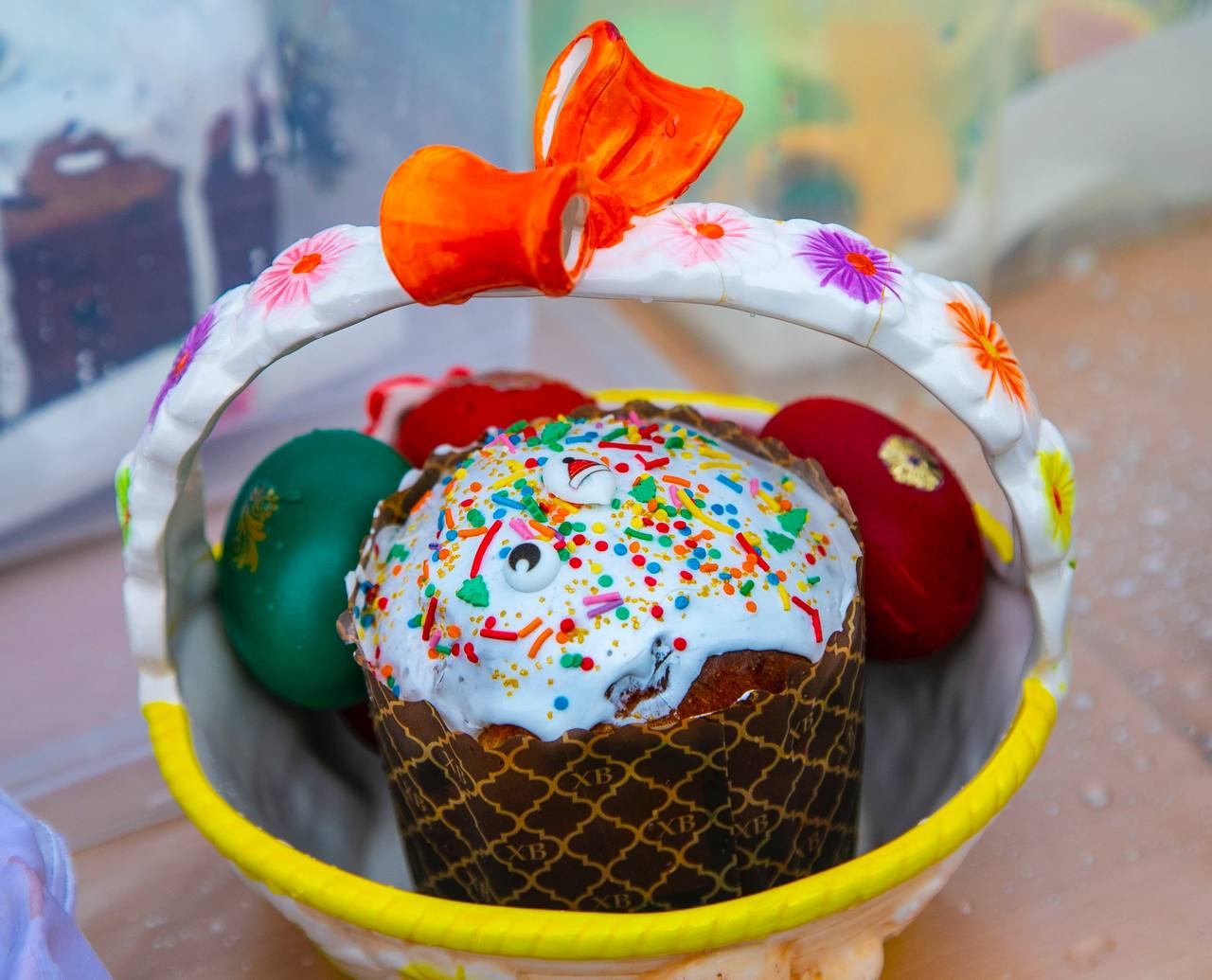 После богослужения владыка освятил пасхальные куличи и крашеные яйца. На праздничную службу и освящение собралось много прихожан.