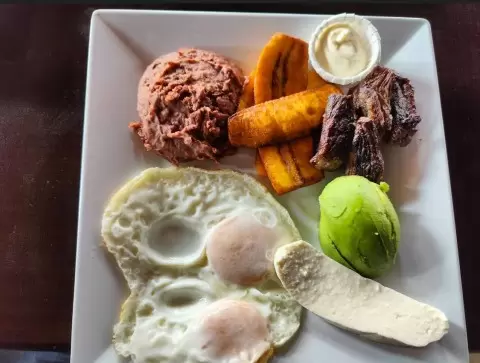 Местные жители с гордостью представляют свое изобилие под названием "desayuno t?pico" — это не просто еда, а настоящая кулинарная симфония, состоящая из: