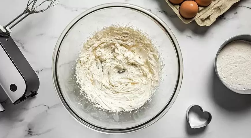 После взбивания до стойких пиков, массу следует отсадить на противень и выпекать в предварительно разогретой до 100 °C духовке 1-2 часа, пока она не станет легкой и воздушной.