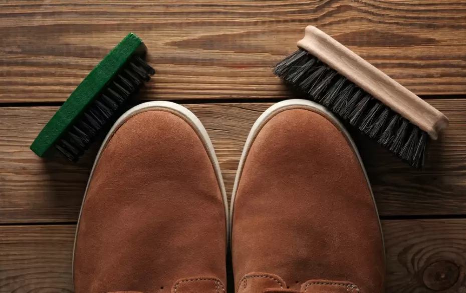 Для очистки сухих загрязнений лучше всего подходит специальная щетка для замши. Достаточно легкими движениями пройтись по ворсу, чтобы удалить грязь. Если загрязнение связано с пищей, например, жирные или соусные пятна, стоит воспользоваться крахмалом или тальком. Нанесите их на пятно на 30 минут, затем уберите с помощью щетки. Также для очищения обуви удобно использовать канцелярский ластик: потереть нужные участки, а затем пройтись влажной микрофиброй с уксусом, смешанным с водой 1:1. После этого обязательно дайте изделию высохнуть на воздухе.