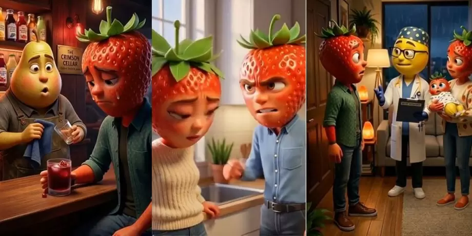 Социумы осыпаны сотнями анимационных короткометражек, созданных с помощью искусственного интеллекта. Главные герои в них — знакомые продукты, наделенные личностями и переживаниями. Например, один из популярных роликов рассказывает о конфликте между "яблоком-мужем" и "яблоком-женой", в котором оба исследуют сложные аспекты своих отношений, а их история заинтересовала более 7 миллионов зрителей.