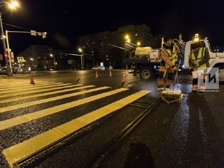 В Казани обновляют дорожную разметку: уже нанесено 3,8 тыс. кв. м