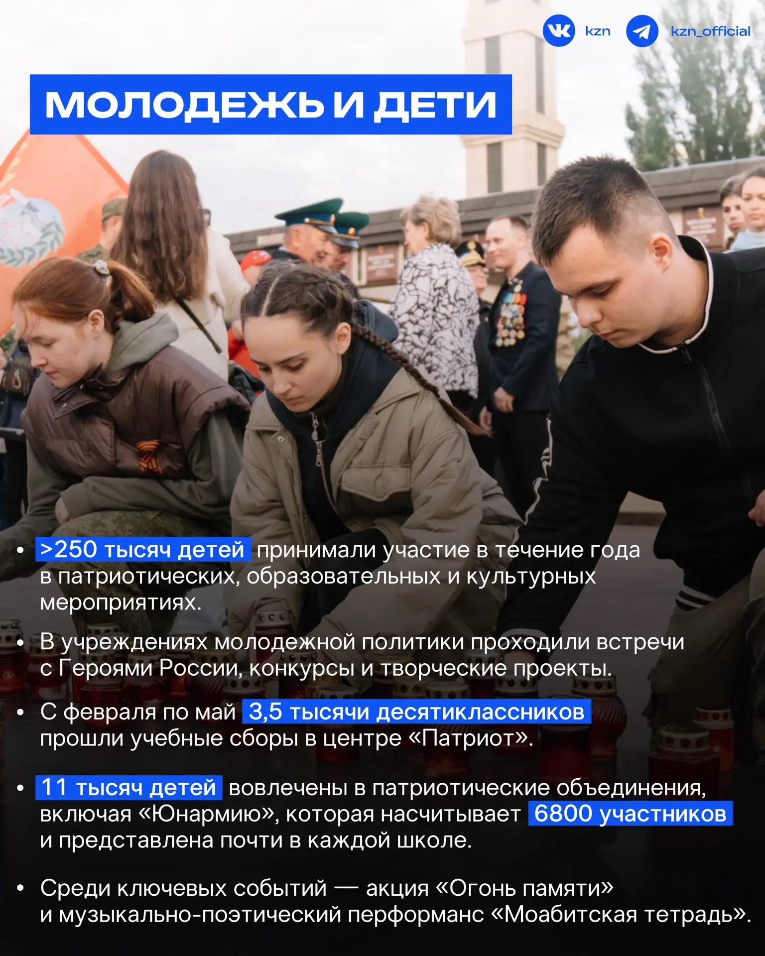 «Казань всегда была и остается городом сильных духом людей. Здесь чтят подвиг, здесь помнят цену мира. В течение прошлого года мы провели сотни мероприятий, встреч, уроков мужества, патриотических акций, но самое главное – это живое общение поколений, возможность сказать слова благодарности лично тем, кто прошел через испытания войны», – отметил мэр Казани Ильсур Метшин.