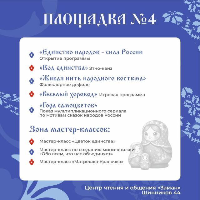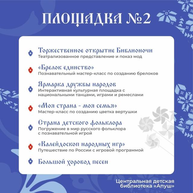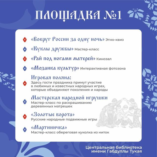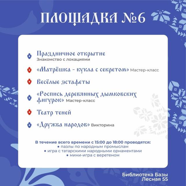 16 апреля библиотеки Нижнекамска подготовили насыщенную программу для гостей всех возрастов. Посетителей ждут творческие мастерклассы, квестигры, русские народные подвижные игры, этноквиз, фольклорное дефиле, викторины и множество других активностей.