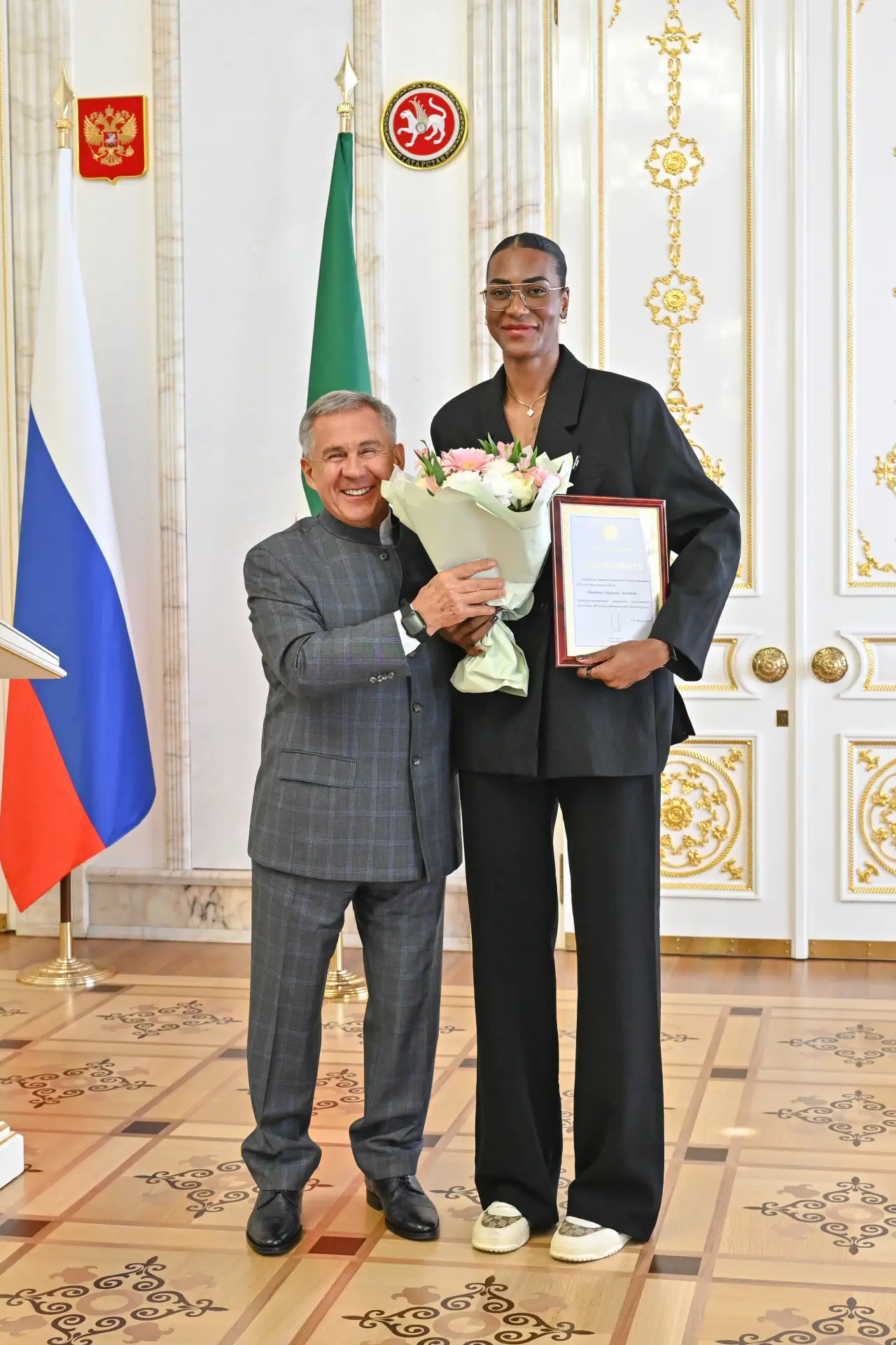 Раис Татарстана вручил спортсменкам государственные награды, подарки, а также сертификат на 5 млн рублей.