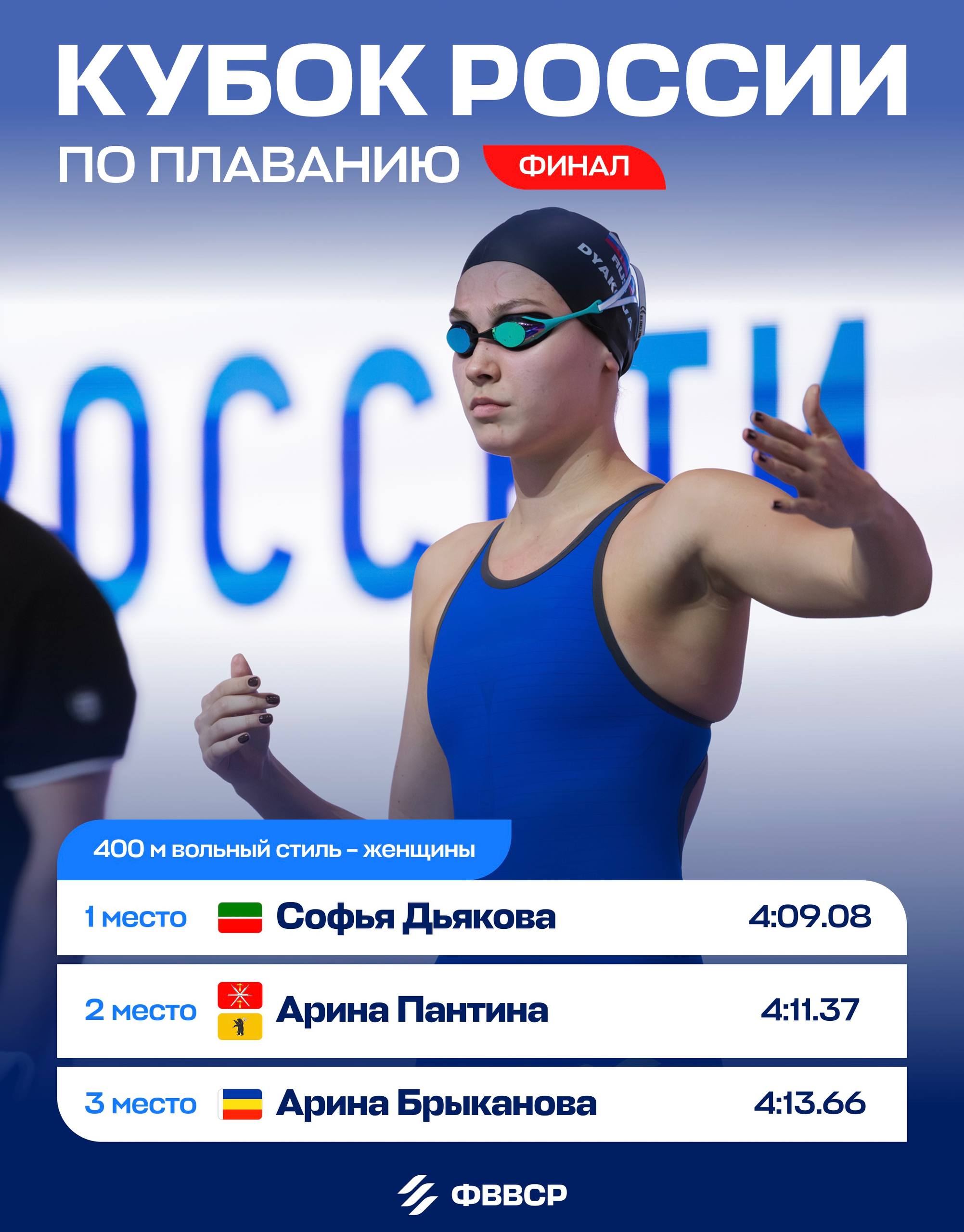 Софья Дьякова становится первой на дистанции 400 м вольным стилем и выполнила норматив чемпионата Европы!