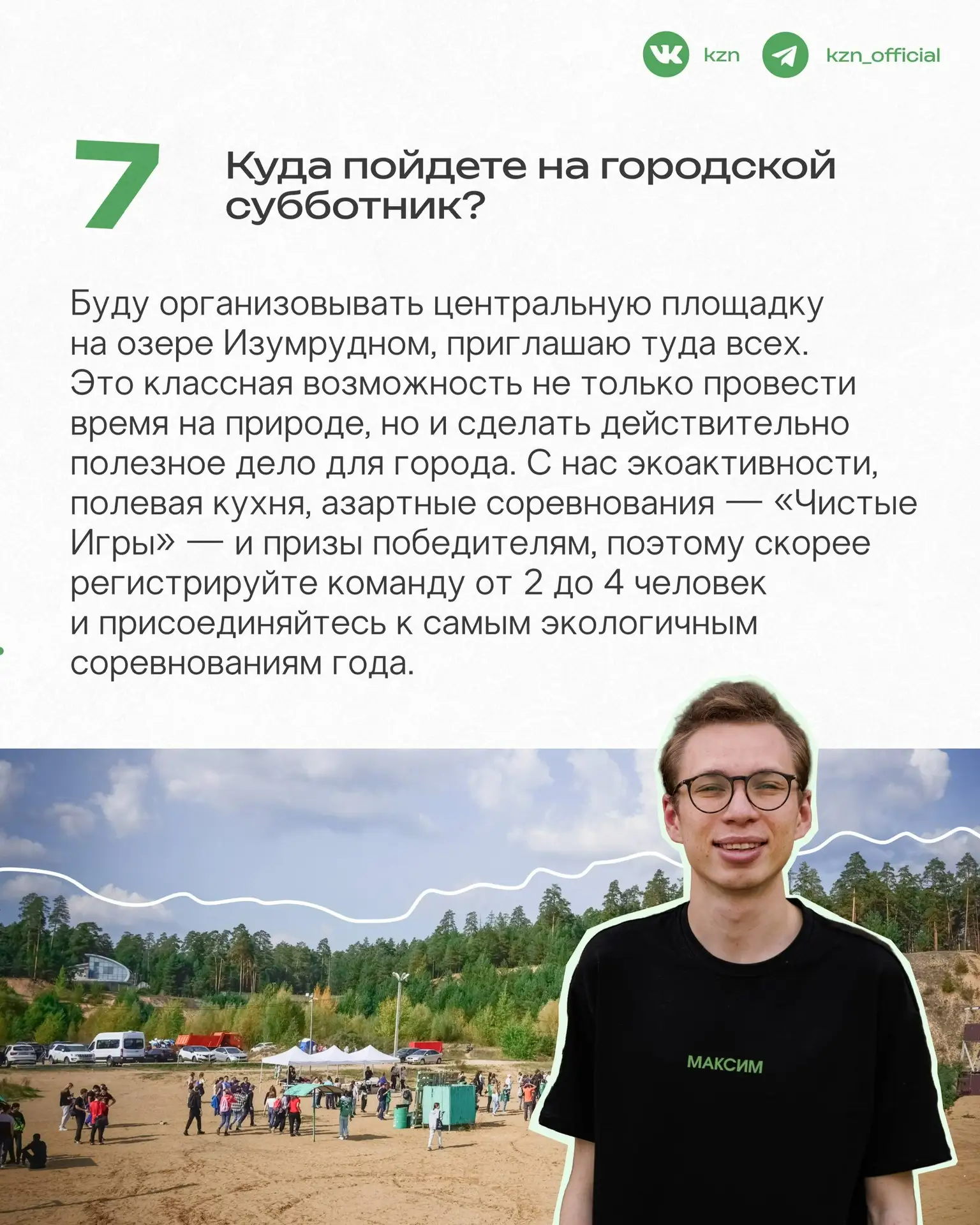 В рубрике #твояказань — рассказываем о том, кто делает «Чистые игры» в Татарстане. Еще будучи школьником, Максим Антонов загорелся идеей проводить такие акции. Поговорили с активистом о городе, геймификации субботников и о том, что каждый может сделать сегодня для более экологичного завтра