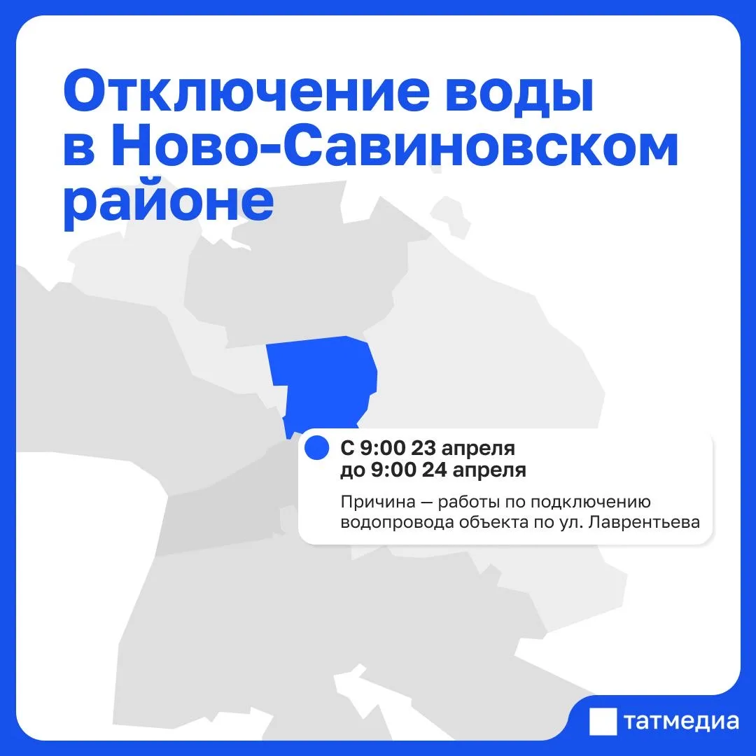 В ряде домов Ново-Савиновского района Казани на сутки отключат воду