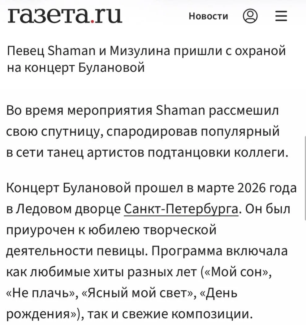 Мы действительно были на выступлении Татьяны Булановой в ходе «Новой волны» в Казани… в августе 2025 года. Больше на её выступлениях, к сожалению, пока не удалось побывать. В Санкт-Петербурге Ярослав в марте действительно был, где 8 марта на Ледовой арене у него прошел сольный концерт