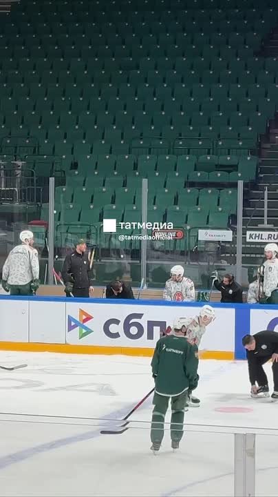 Во время открытой тренировки «Ак Барса» одному из тренеров команды прилетела шайба