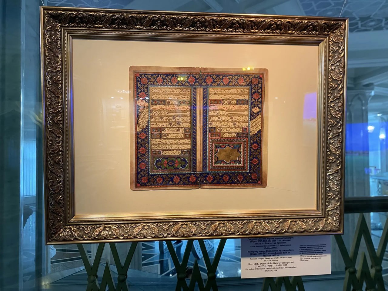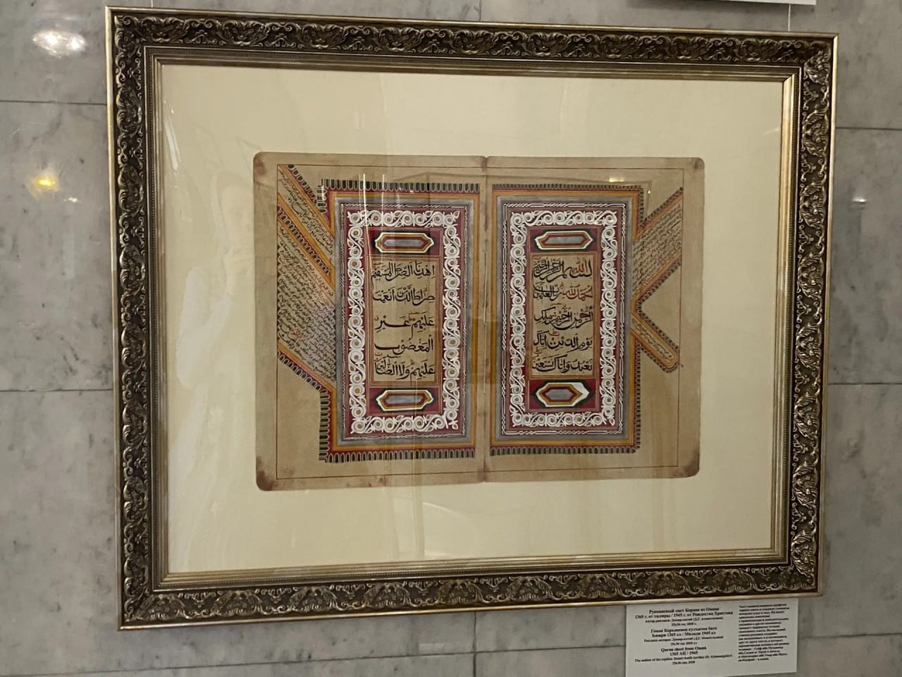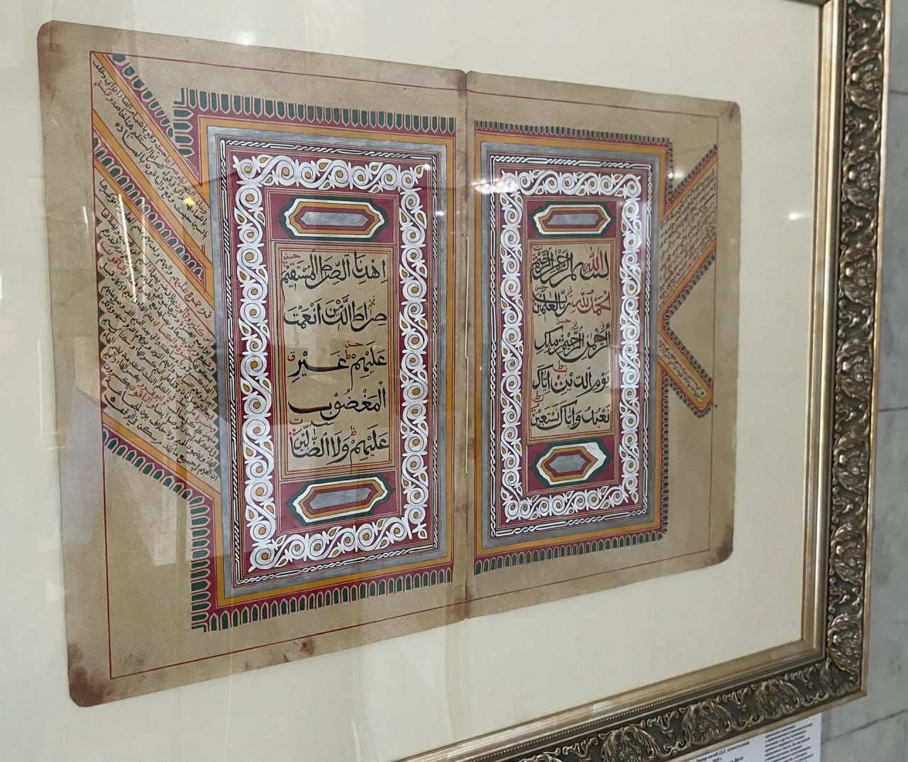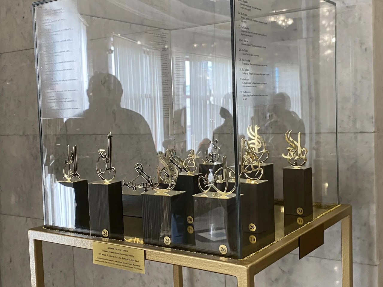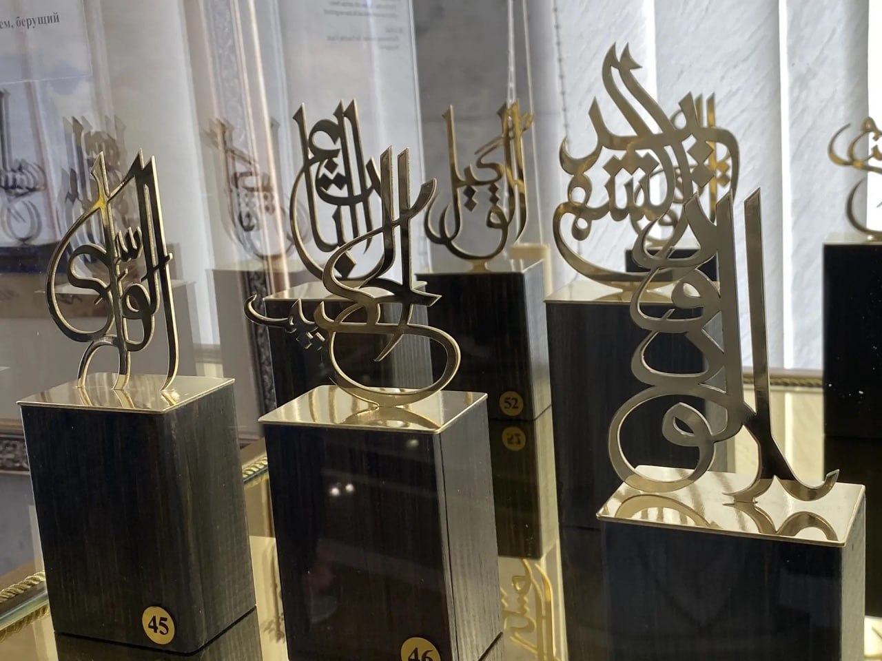 В экспозиции представлены рукописные листы Корана, шамаили и киты – работы художника и реставратора Дамира Ахматгалиева, а также коллекция миниатюрных скульптур «99 имён Аллаха» от дизайнера-ювелира Азамата Гилязетдинова из коллекции Елабужского музея-заповедника.