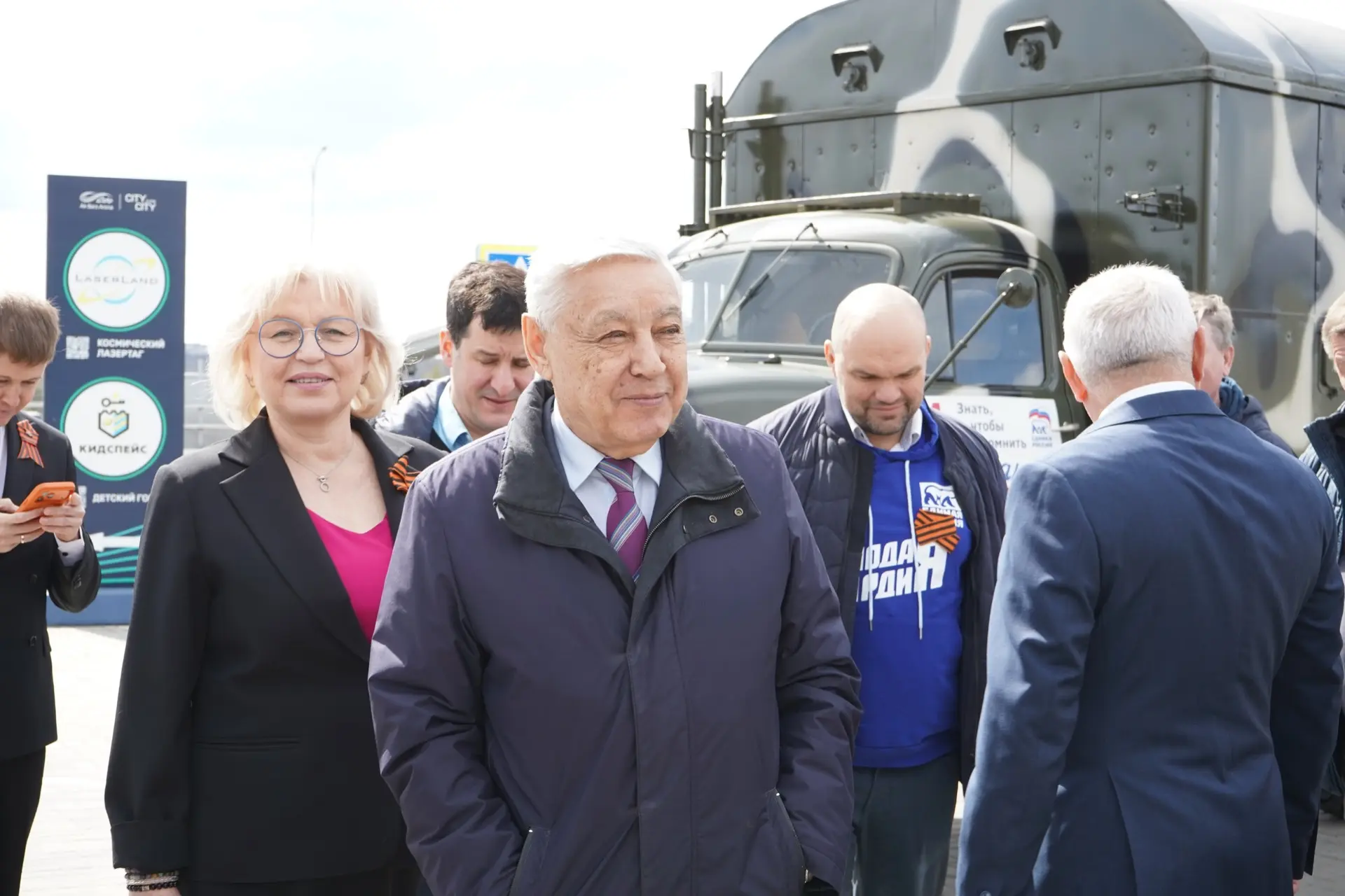 Перед началом заседания Фарид Мухаметшин осмотрел автопарад ретроавтомобилей, приуроченный к Всероссийской акции «Диктант Победы», а также лично принял участие в акции.