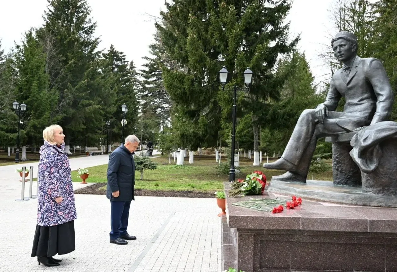 Раис Татарстана открыл обновленный музейный комплекс Габдуллы Тукая в селе Новый Кырлай Арского района и возложил цветы к памятнику поэта.