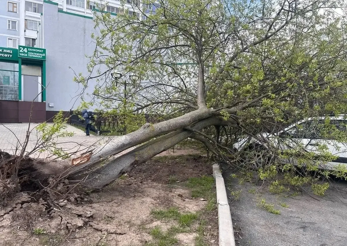 В Нижнекамске штормовой ветер привёл к падению деревьев