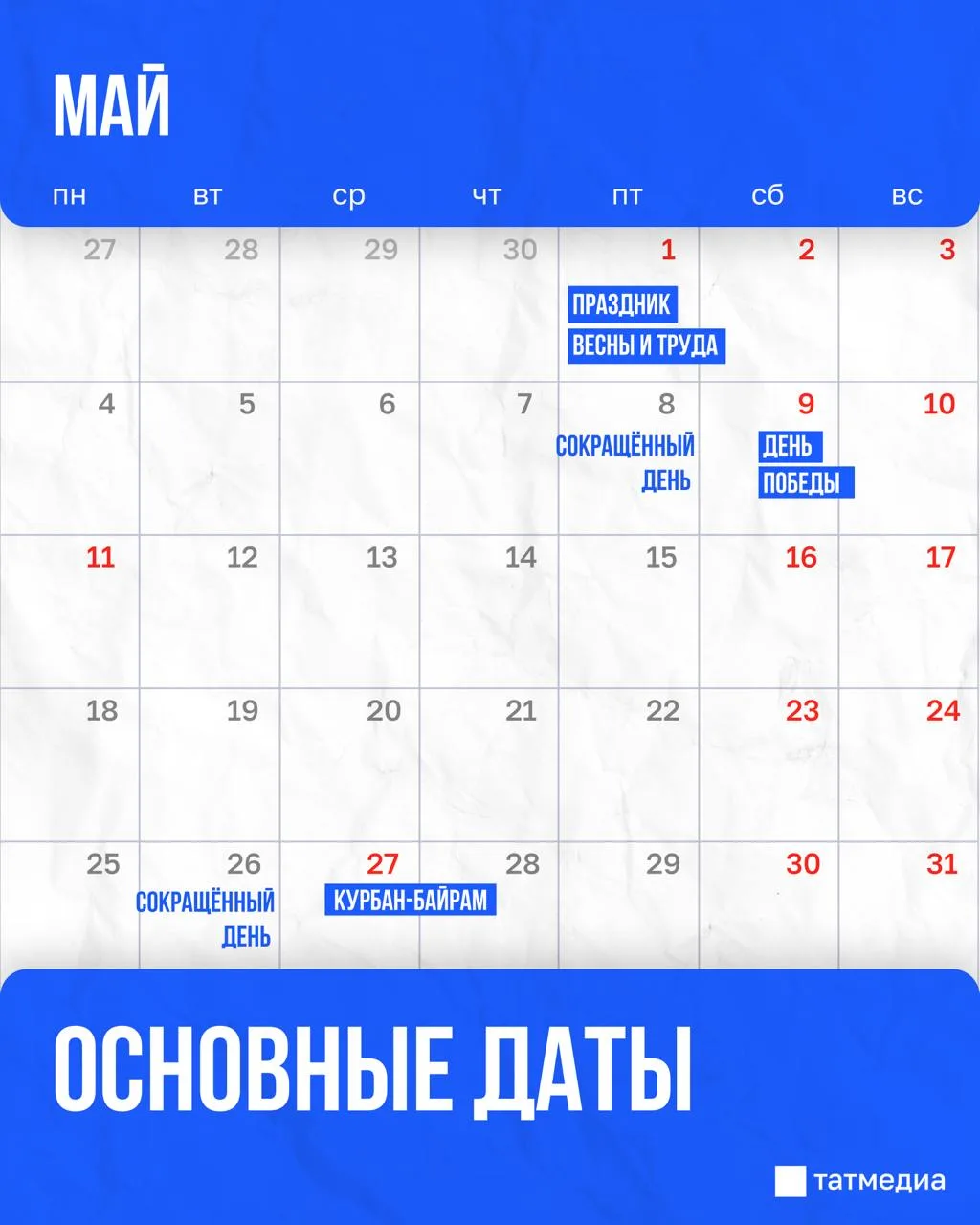 Майские праздники всё ближе – самое время заглянуть в календарь
