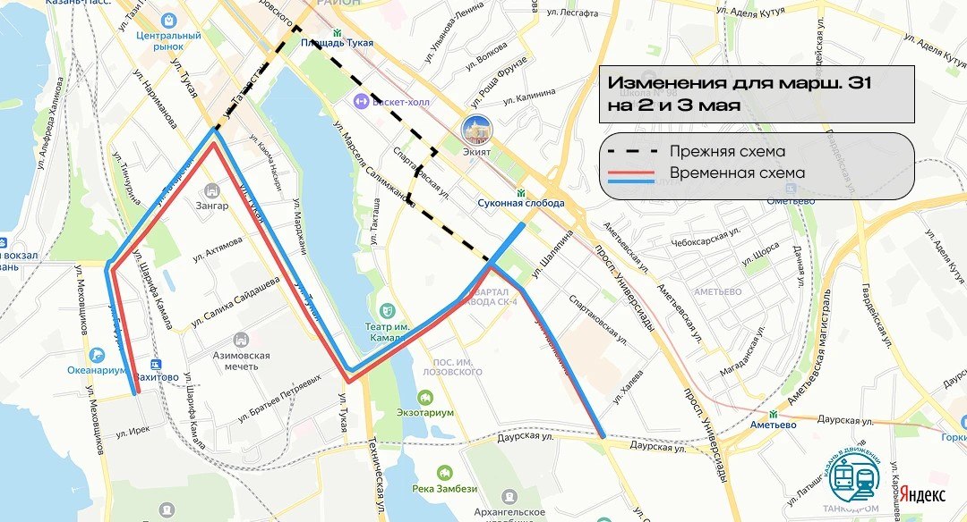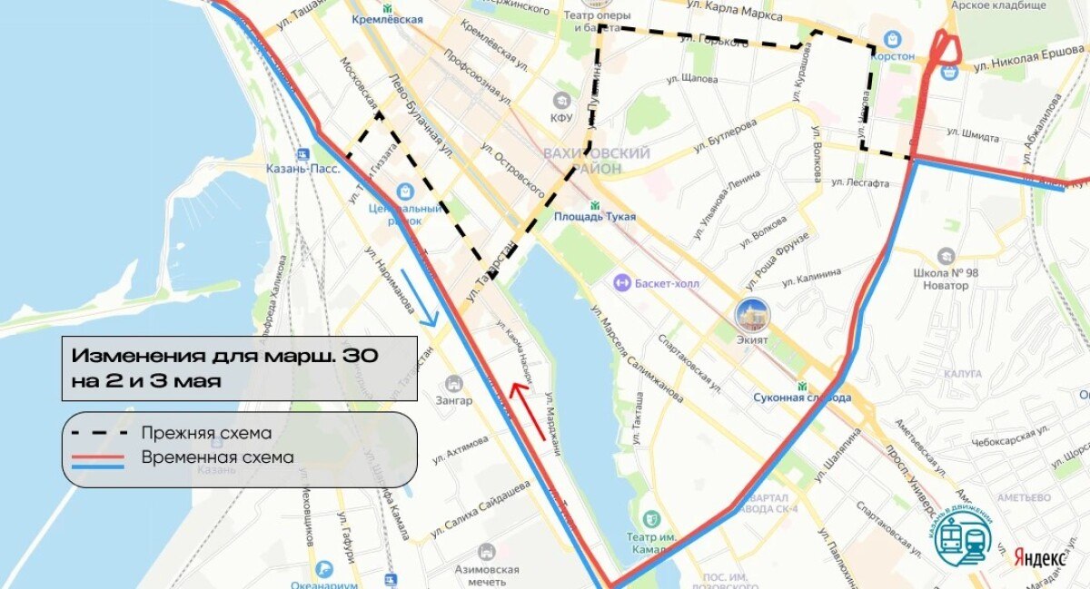 Схемы движения автобусов и троллейбусов изменят в дни «Казанского марафона». С 1 по 3 мая изменения коснутся маршрутов автобусов № 1, 2, 5, 6, 10, 10а, 15, 22, 29, 28а, 30, 31, 35, 35а, 43, 47, 54, 71, 74, 75, 91, а также троллейбусов № 1, 2, 3, 5, 6, 7, 8, 12, сообщает мэрия. Полный список изменений — здесь.