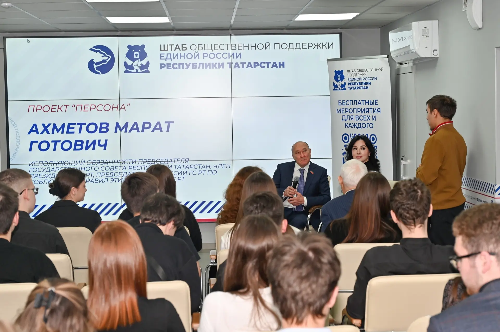 Со студентами Казанского аграрного университета, обучающимися по направлению государственного и муниципального управления, встретился сегодня исполняющий обязанности Председателя Государственного Совета Марат Ахметов. Встреча прошла в рамках проекта «Персона» в Штабе общественной поддержки «Единой России» в РТ.