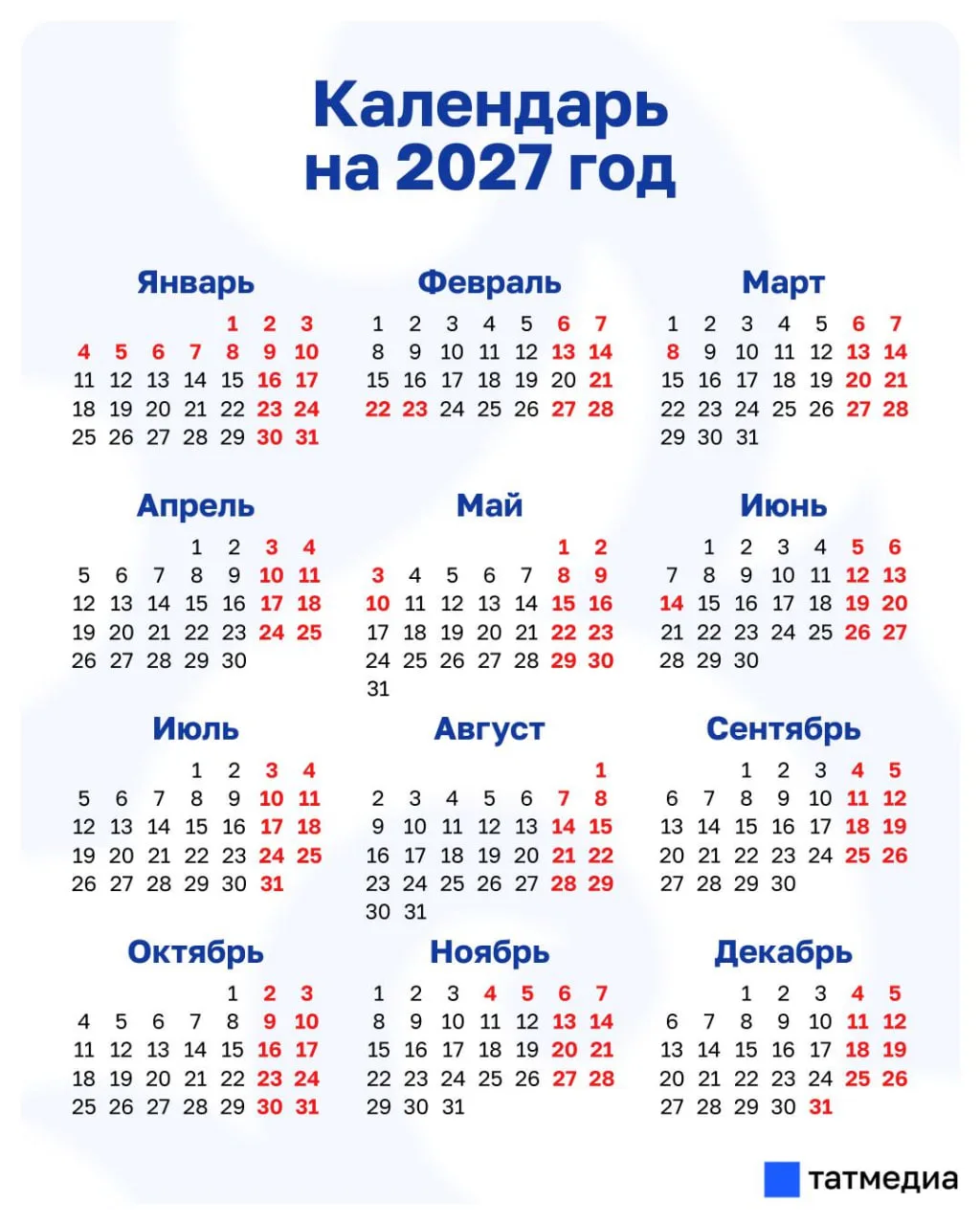 На 23 февраля и 8 марта у жителей республики длинные выходные будут по три дня – с 21 по 23 февраля и с 6 по 8 марта.